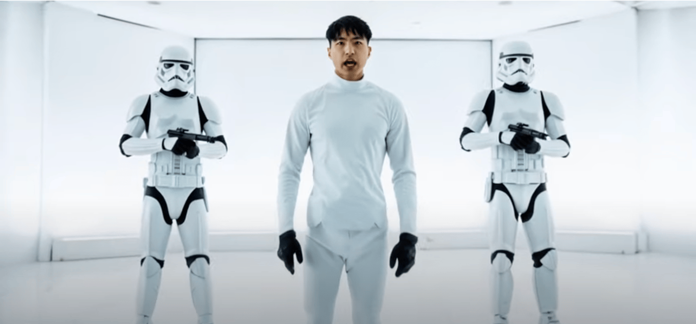 描述你想要的电影场景,比如"on the left is a stormtrooper and on the right is a Storm Trooper"(把自己放进星球大战)。